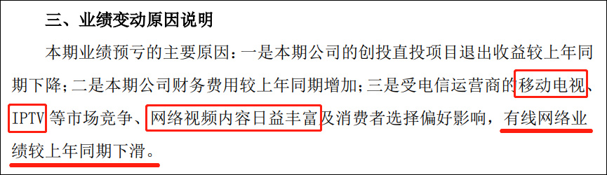 据《跟踪报告》,该业务主要由北京中艺达晨艺术品投资管理有限公司执行:基金管理数达到5支,总规模超过20亿元。 对此,大公国际评价道:“总体看,投资管理业务投资金额继续增长,能为公司(电广传媒)盈利提供良好补充。” 至于盈利能力,电广传媒在《2018年前三季度业绩预告》中曾表示,业绩预亏的主要原因有: